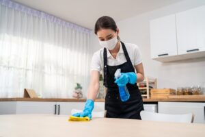 ⦁ Wiping down kitchen counters, sinks, and appliances